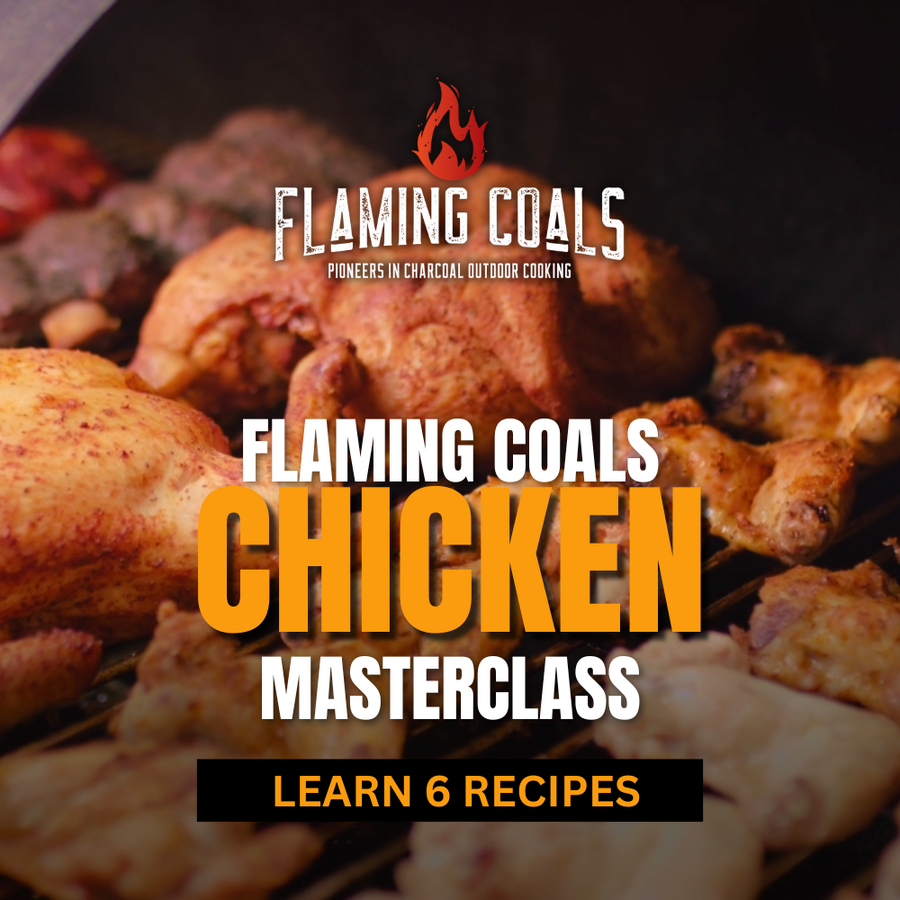 Introducing the Flaming Coals Chicken Masterclass: Elevate your chicken cooking skills with our exclusive online video series. Get six episodes featuring different recipes for smokers and rotisseries. Learn the secrets of perfect smoky flavour, juicy meat, and crispy skin. Accessible from home, with downloadable recipes and a community of enthusiasts. Give your chicken a whole bunch of flavour!