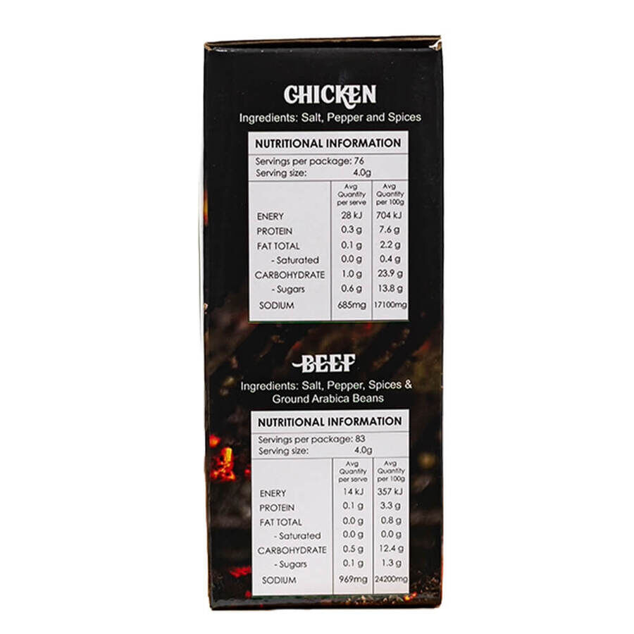 Flaming Coals Ultimate 4 Rub Pack - Elevate your dishes with these rubs: Bovine Espresso, Greek Lamb, Porkinator, and Clucking Mad Chicken. Unforgettable flavours await!
