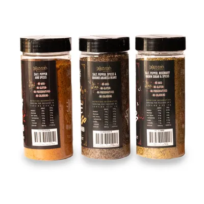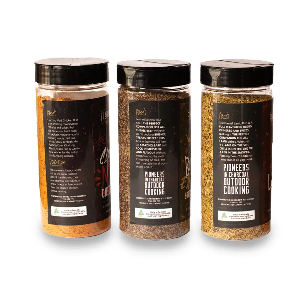 The Flaming Coals Ultimate Rub Pack - Giftbox Set includes 3 Flaming Coals Rubs. Whether you are cooking Chicken Gyros preparing Briskets and Steaks or even craving Lamb dishes, the Ultimate Rub pack is all you need. So if you are planning to cook in your backyard with family and friends, grab this Rub pack and you will be completely covered.
