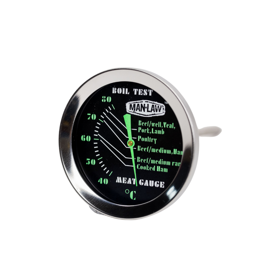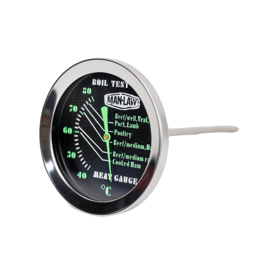 The Manlaw Glow-in-the-Dark Meat Temperature Gauge is what every good Master Chef, Cook, and Backyard BBQer has tucked away in their kitchen 2nd drawer ready to pull out when cooking a roast.
