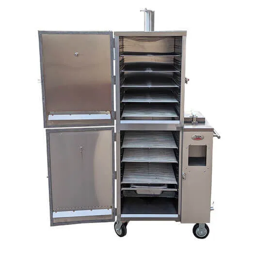 Constructed with 1.5mm thick steel walls and 25mm insulation throughout, this smoker retains heat efficiently while delivering consistent cooking temperatures. The oversized water pan helps regulate humidity, while adjustable air and chimney dampers give you fine-tuned control over airflow. Built tough for commercial use, it features oversized caster wheels for effortless mobility.