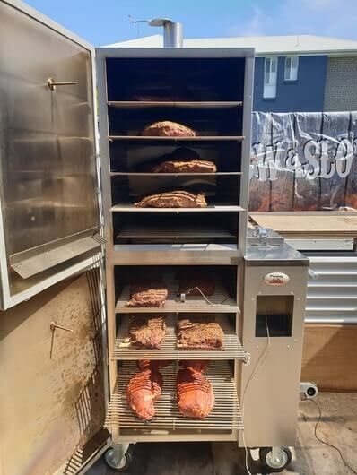 Introducing the Gravity Fed Smoker - Extra Large - Flaming Coals, the ultimate smoker designed for professional pitmasters, caterers, and serious backyard BBQ enthusiasts. Built in Australia and engineered for consistency, control, and massive cooking capacity, this smoker delivers flawless results every time.