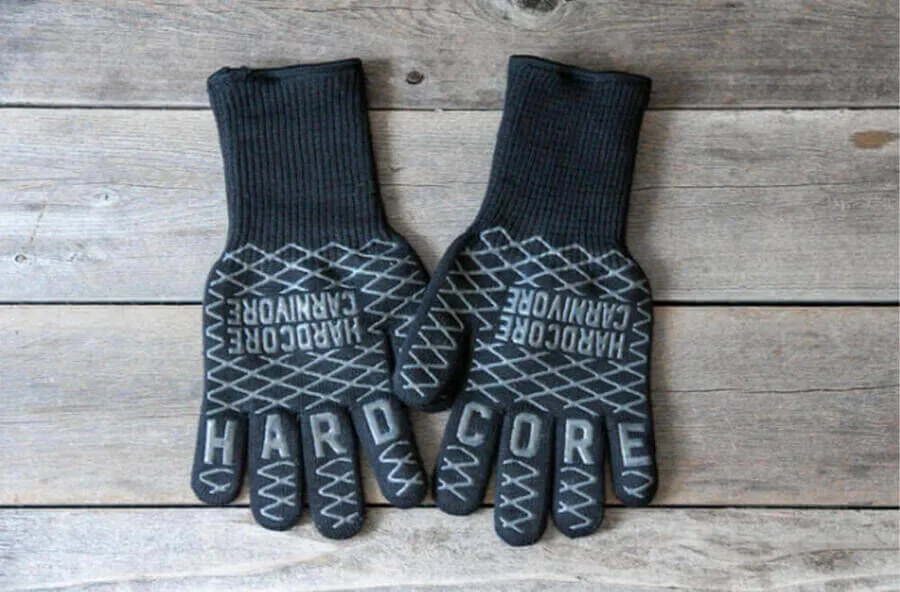 With Hardcore Carnivore High Heat Gloves, you can move grates, open lids, and even handle hot briskets.
