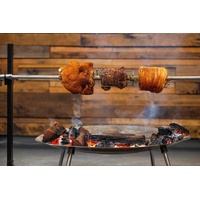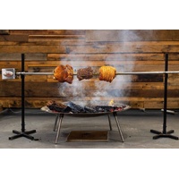Designed with durability in mind, this Heavy Duty Portable Camping Spit Roaster outperforms standard models on the Australian market. Featuring a solid stainless steel 200cm skewer, extra tall supporting legs and a sturdy height adjustment mechanism, it can handle whole animals with ease while staying steady over your firepit or 44-gallon drum.
