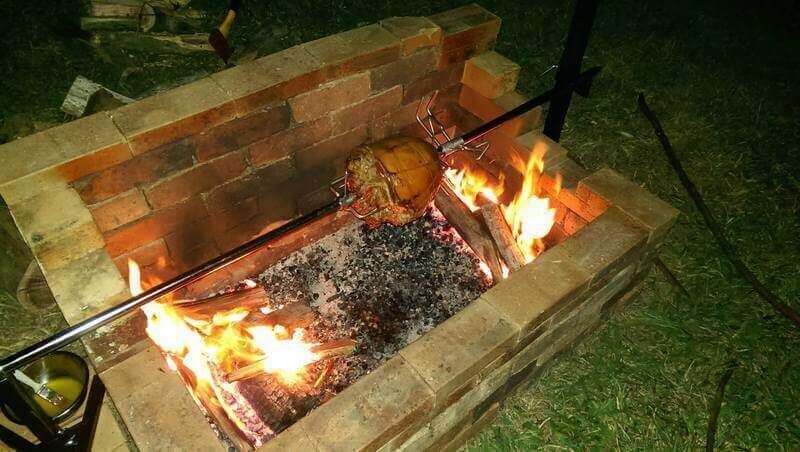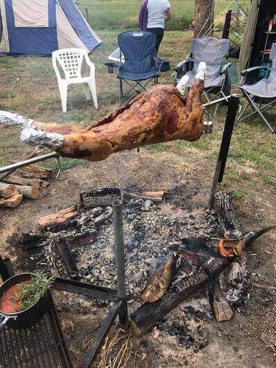 Heavy Duty Portable Camping Spit Roaster- 2 Meter Skewer | Flaming Coals