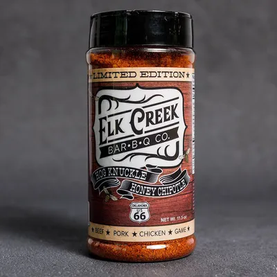 Elk Creek strives for the balance in flavours so you will have the best cooking experience! The bright mahogany colour produced by this rub simply can't be matched! and with that classic yet unique flavour that champions demand and your guests will enjoy... you just can't go wrong with Elk Creek Hog Knuckle Honey Chipotle, give it a try you'll be glad you did!!