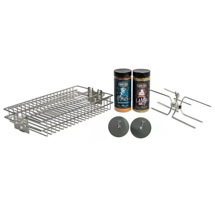 With gyros plates and a double-ended rotisserie fork, meats are held securely on the skewer for even rotation and cleaner carving. This added stability improves cooking consistency and reduces movement during longer cooks.