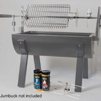 The Ultimate Jumbuck XL pack includes, Gyros Plate, Greek Gyros Spit Roaster Seasoning, Spit Rotisserie Multi-Use Basket Large, Double Ended Rotisserie Fork/Prong - 10mm and Flaming Coals Traditional Lamb Rub