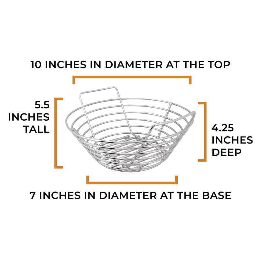 Kick Ash Basket for the Small BGE in Stainless Steel. No muss, no fuss BBQ grilling - the Kick Ash Basket allows you to lift the entire batch of cold charcoal and shake the ash out, allowing the remaining charcoal to breathe and making starting the fire much faster and easier.