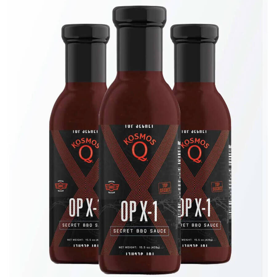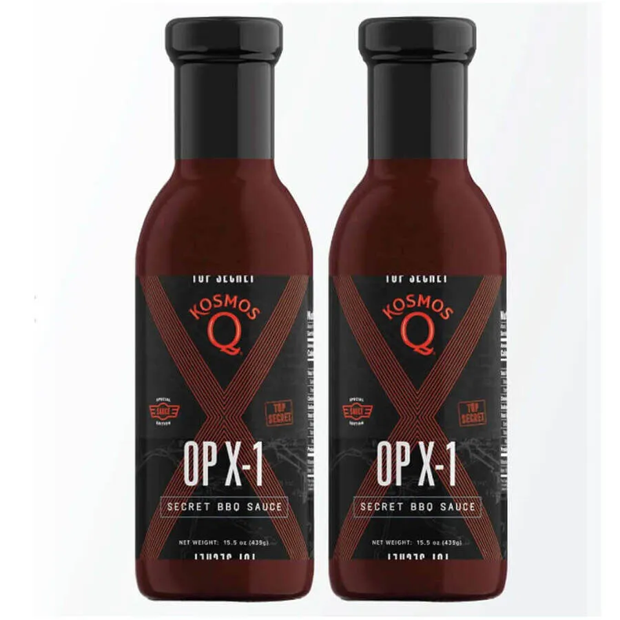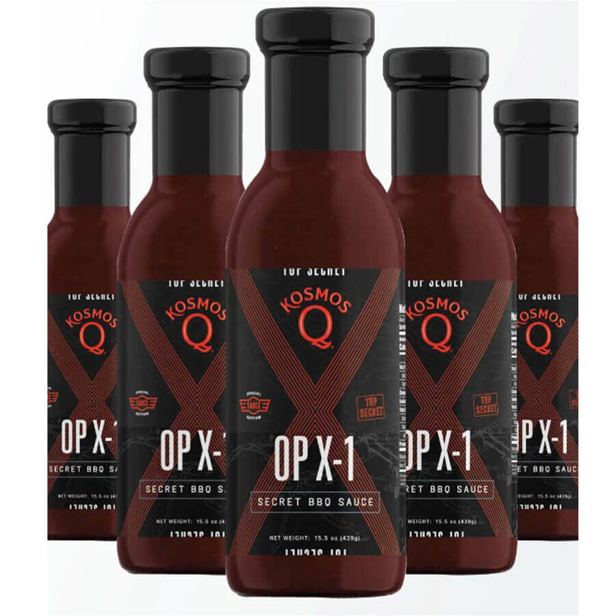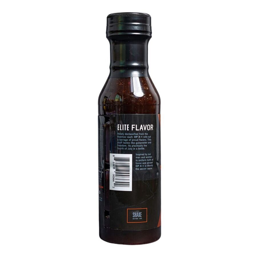 Kosmos Q OPX 1 BBQ Sauce 15.5oz is the most patriotic in Kosmos Q line up. A newly classified blend of spice and tangy liquid ingredients all converge and put the taste of victory in a bottle. Specially formulated to boost morale at your next cookout. OP X-1 is a standout recruit in our line of competition tested and approved sauces.