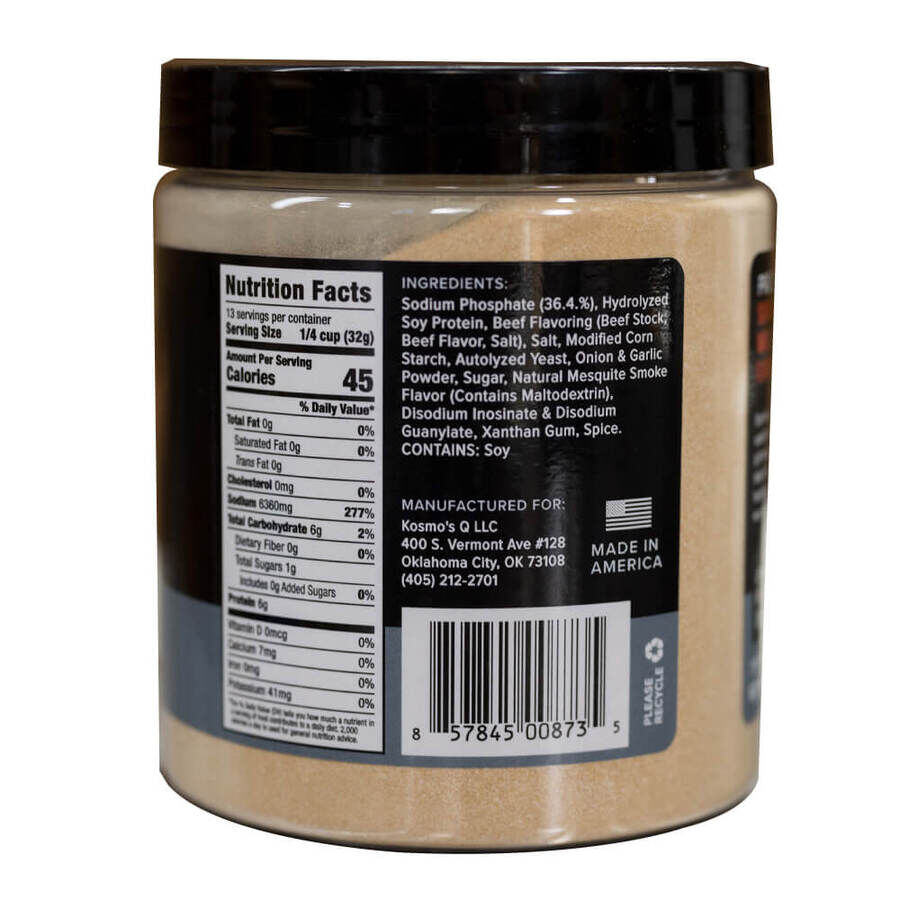 Kosmos Q Smoke House Brisket Injection will Infuse your brisket with the appetizingly aromatic taste of an old-fashioned smokehouse. One of the best barbecue brisket injections you will ever use! It has a succulent synthesis of signature spices and moisture-retaining components, combined with smoky mesquite flavouring and dehydrated beef stock, you can count on producing a mouthwateringly tender brisket worthy of even the most seasoned BBQ grillmaster. You will need Kosmos Q's Smoke House Injection to win a judge's affection.