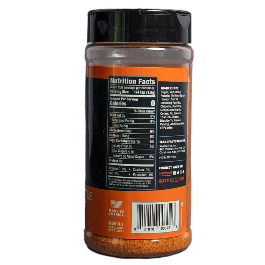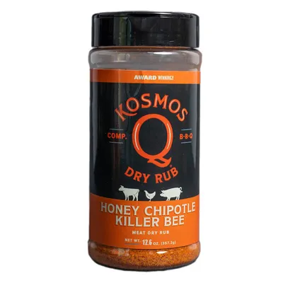 With Kosmos Q Spicy Killer Bee Chipotle Honey, we took our sweetest honey rub and add fiery chipotle to make it a beautiful contradiction of sugar, spice and everything nice. If your taste buds can handle being deliciously confused, then it goes great on just about any meat you could possibly imagine! It is also Gluten and MSG Free.