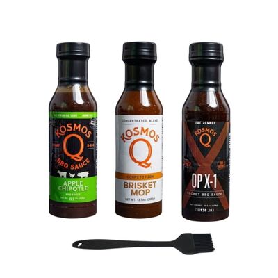 Kosmos Q Ultimate BBQ Sauce Pack with Free basting Brush is the combination of all Kosmos Q's best sauces on the market in one pack. So whether you are cooking brisket, lambs pork or chicken, this will be your best buddy. Grab now so that you will be always prepared for the next outdoor cooking. Also perfect for gift ideas. The free Basting Brush will help you infuse the flavour to the meat.