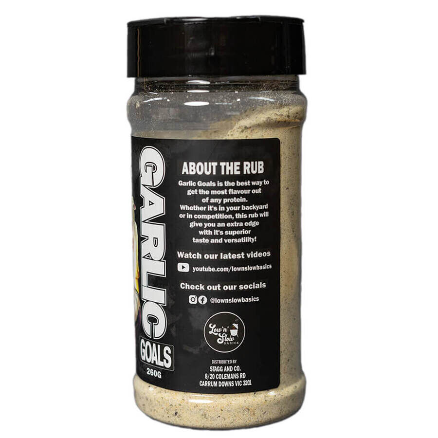 Low 'n' Slow Basics Garlic Rub. Garlic Goals are the best way to get the most flavour out of any protein. Whether it's in your backyard or in competition., this rub will give you an extra edge with its superior taste and versatility.