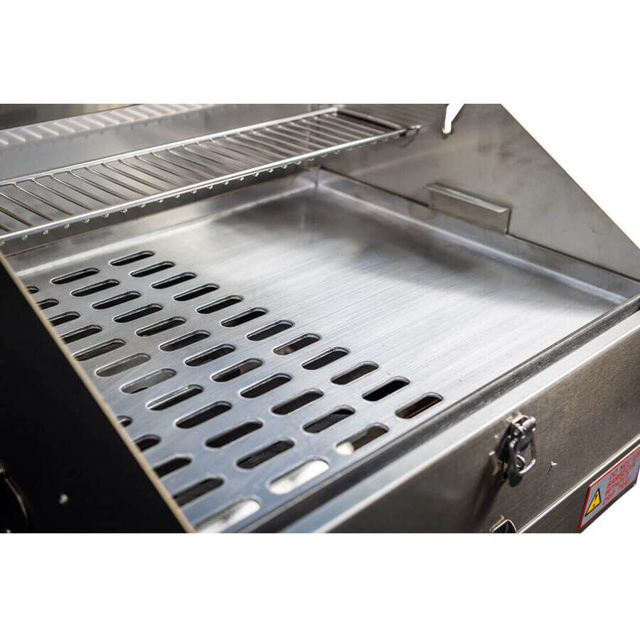 Cooking Surface Setup Half grill and half solid plate setup, ideal for grilling and roasting