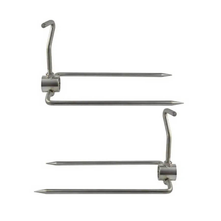 Heavy-duty prongs designed for whole animals and large cuts of meat. They grip firmly and rotate smoothly, giving you greater control during long cooks.