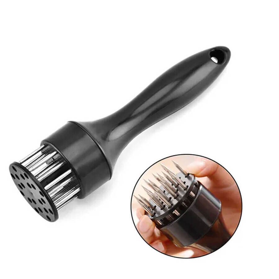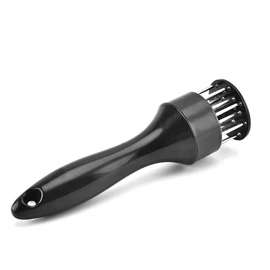 The Meat Tenderizer Needle is a stainless steel tool designed to enhance the tenderness of your meat with its sharp needles and comfortable grip.