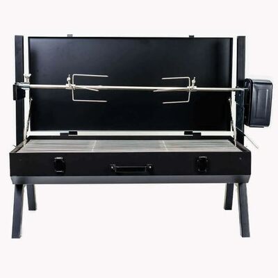 The Flaming Coals Mini Spit Rotisserie with Windshield and Battery-Operated Motor is your go-anywhere BBQ. Compact, quick to assemble, and built tough, it lets you enjoy authentic charcoal cooking wherever adventure takes you.