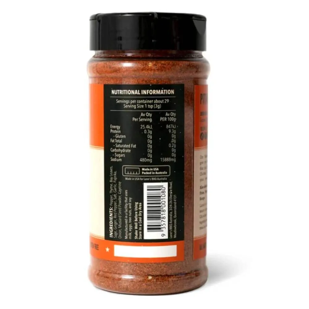Introducing Lane's BBQ Nashville Hot Seasoning, a skillfully crafted mix of top-tier ingredients such as cayenne pepper, paprika, and garlic, designed to replicate the distinctive fiery essence of Nashville-style hot chicken. This blend offers a bold and spicy flavour that will tantalize your taste buds, harmoniously combining a fiery punch with a hint of sweetness and tanginess for a one-of-a-kind, tantalizing taste experience.