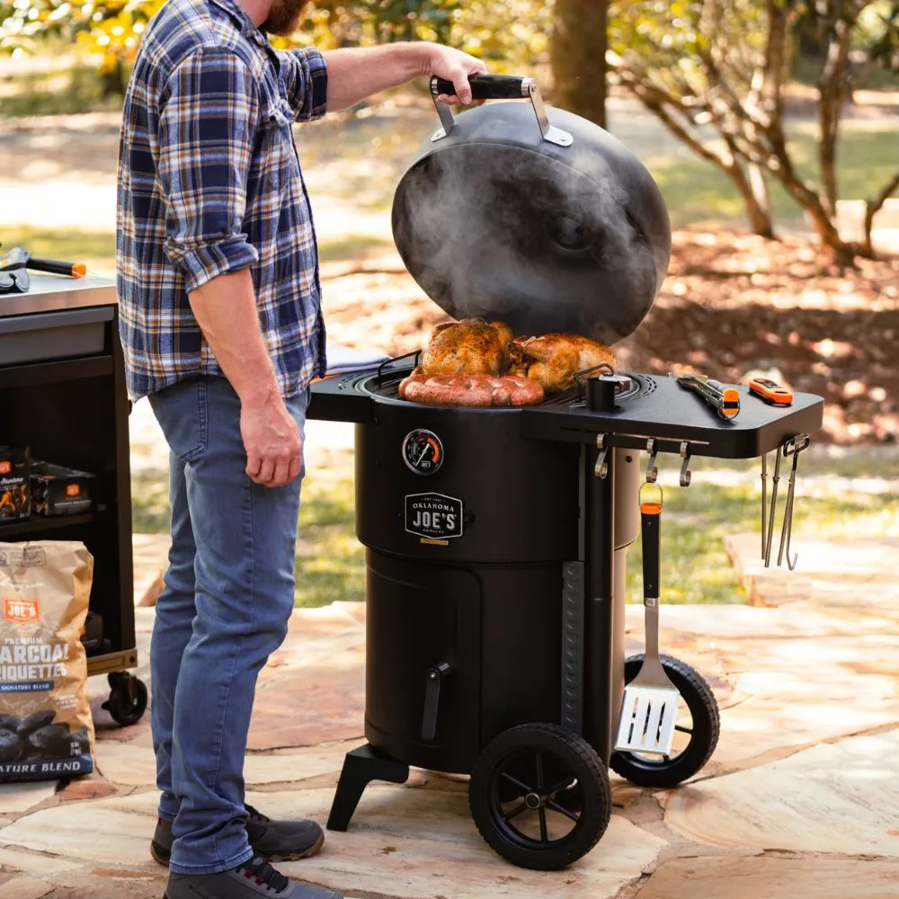 Bronco Drum 2.0 Smoker | Oklahoma Joe's Model: 25203120 Suitable For: Smoking and grilling meats at high heat or low and slow Hanging ribs and other meats for authentic pitmaster results Backyard BBQs, tailgates, and small outdoor spaces Creating an authentic smoked flavor with precision control Introducing the Bronco Drum 2.0 Smoker. Enhance Your Smoking Game. Get ready to experience precision and versatility with the Oklahoma Joe's Bronco Drum Smoker & Grill. Perfect for anyone who loves the art of smoking, grilling, or hanging meats, this compact smoker delivers big performance in a space-saving design. Total Versatility Quickly switch between smoking, grilling, or hanging ribs with the included kit. The Bronco Drum 2.0 is built for flexibility, so whether you're looking to grill at high heat or smoke low and slow, you can do it all with ease. Fuel Access Door Oklahoma Joe's industry-leading fuel access door allows you to add charcoal or wood without disturbing your food, grates, or heat diffuser. This feature keeps your heat and smoke consistent throughout your cook. Superior Construction Built tough with premium materials and gaskets for all-day heat retention. The Bronco Drum 2.0 is designed for superior heat control, making it perfect for both long smokes and quick grilling sessions. Cooking Space & Capacity Offering 284 sq. in. of cooking surface, plus a rib hanger kit for expanded capacity, this smoker gives you more room to cook your meats just the way you like them. With the ability to hold up to 8 lbs of fuel, the Bronco Drum 2.0 provides over 14 hours of cooking time without needing a refill. Inclusions: Feature Specification Total Cooking Area 284 sq in. of cooking space, providing ample room for grilling and smoking multiple meats. Fuel Access Door Unique door design allows easy addition of charcoal or wood without disturbing the food, ensuring stable temperature and smoke. Contructions Built with premium materials and an airtight design, ensuring maximum heat retention for long, uninterrupted cooking sessions. Meat Hooks and Hangers Includes 9 meat hooks and 3 hangers, ideal for hanging ribs or other meats to achieve authentic pitmaster results. Airflow System Precision airflow system provides complete control over temperature, ensuring optimal cooking conditions. Wheels Steel-core rubber tread wheels provide durable and smooth mobility for transport. Assembly Required Yes, assembly is required. Removable Ash Pan Yes, for easy clean-up after cooking. Weight 136.50 lbs, ensuring a solid, stable build for performance and durability. Bring the Fire to Your Backyard Upgrade your outdoor cooking setup with the Oklahoma Joe's Bronco Drum 2.0 Smoker. Whether you’re grilling, smoking, or hanging meats, this smoker offers everything you need to cook like a pro. Perfect for backyard BBQs or tailgates, it's a compact, versatile smoker that packs a punch. Order now for fast shipping Australia-wide and enjoy hassle-free 60-day returns. Don’t just cook, create memories around the fire. Still Not Convinced? We invite our customers to review our products and services regularly, and are very happy to say our feedback scores are excellent across multiple platforms. Trustpilot Review Google Review Facebook Review Want to Know More About Who You're Buying From? Read more about us and meet our crazy, mad team of barbecuers who love nothing more than to chew the fat, helping turn customers just like you into the ultimate backyard BBQ hero.