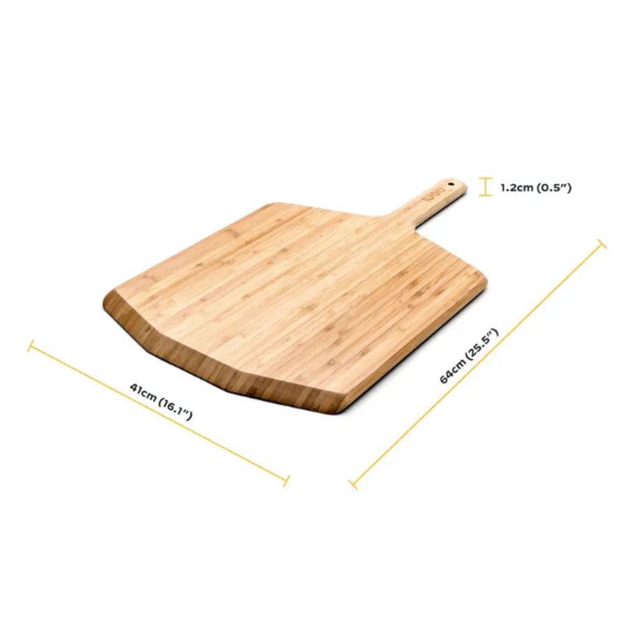 With its generous dimensions of 64 x 40 x 1.5cm (25.1 x 15.7 x 0.5”), the Ooni 16" Bamboo Pizza Peel & Serving Board is designed to fit perfectly with the Ooni Pro 16 without the Pizza Door attached, offering a smooth, large surface for all your pizza-making needs.