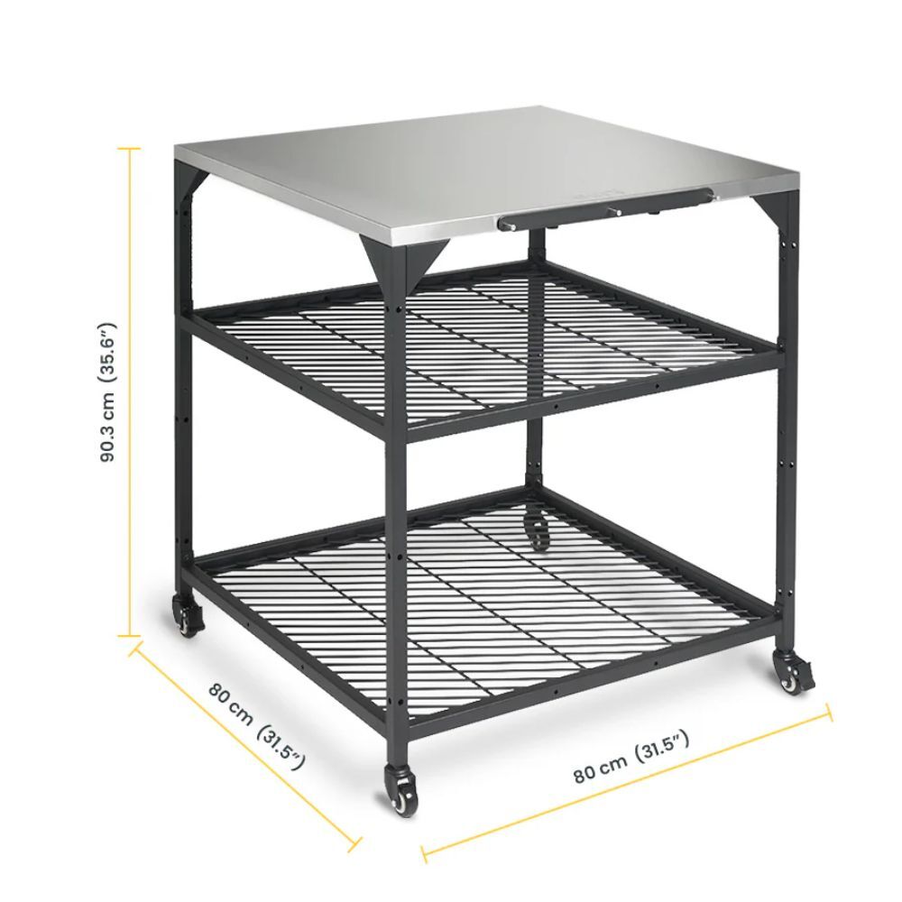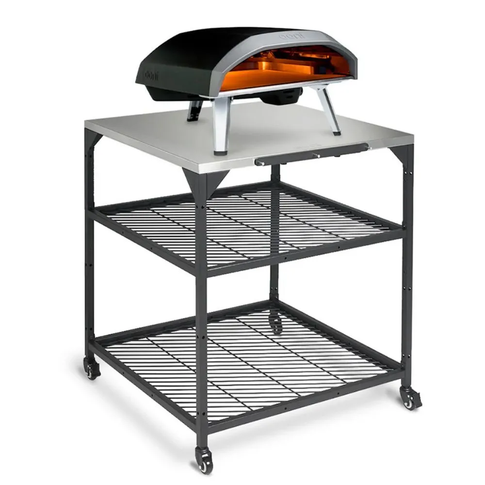 Crafted from durable powder-coated carbon steel, each table features a stainless steel worktop that fits all Ooni oven models perfectly, with a lower shelf to neatly store your propane tank.