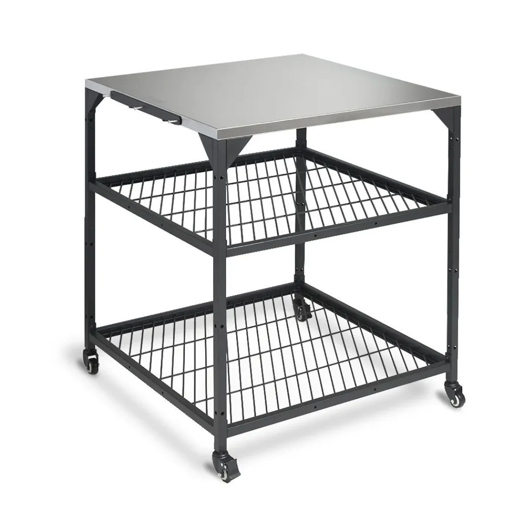 Designed for practicality, the tables include two height-adjustable shelves, built-in hooks for your peels and tools, and lockable castors to keep everything stable while you cook.