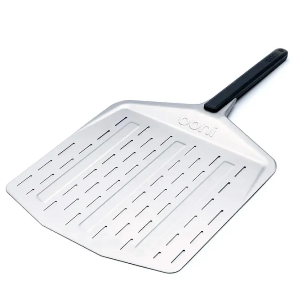 The Ooni Perforated Pizza Peel is a lightweight, high-quality aluminium tool designed to effortlessly slide, turn, and retrieve pizzas from your oven. Its tapered edge smoothly glides under pizza bases, while the perforations allow steam to escape and excess flour to fall away, ensuring crisp, evenly cooked bases every time. Finished with a hard anodised coating, this sleek peel offers superior durability, corrosion resistance, and a smooth surface for easy pizza launching and retrieval.