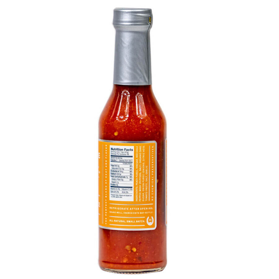 Horseshoe Brand Peach Hot Sauce combines hot serrano chilies with sweet, juicy peaches to create a sauce that is both sweet and spicy.