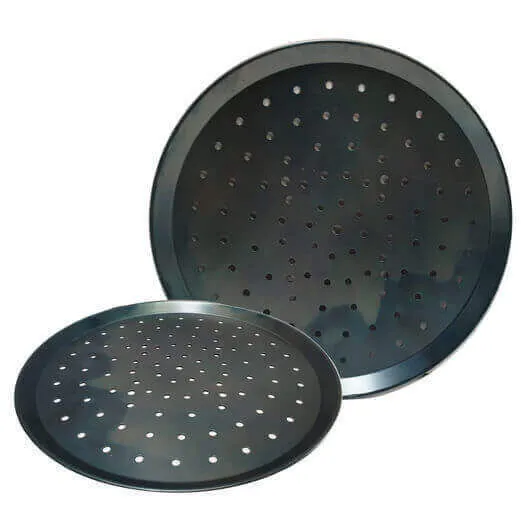 This commercial-quality, aluminium pizza pans come with an angled edge to avoid losing that delicious home-made pizza over the side. The holes promote airflow so that the dough can cook evenly and give you a perfectly cooked crust. It also enables moisture to escape preventing a soggy crust. Easy to slide under with a pizza peel, the Flaming Coals Perforated Black Pizza Tray is the perfect accessory for your pizza oven.