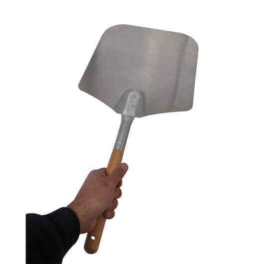 One of the easiest ways to put your pizza into your pizza oven without all its toppings falling off and without the risk of burning your hands is by using a pizza peel with an aluminium head