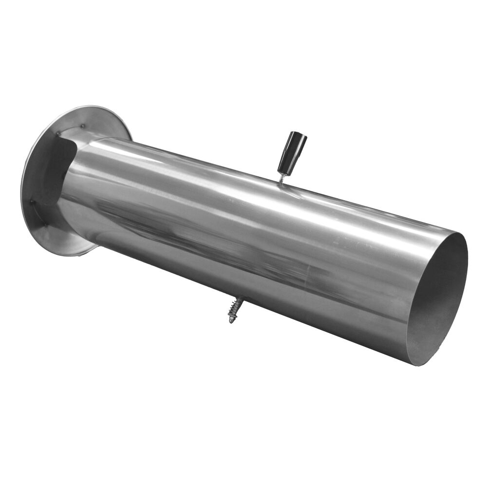 Stainless steel premium pizza oven chimney with cowl and flue dampener. Compatible with Flaming Coals Premium Pizza Oven model PO010B. Approximately: 630mm long x 155mm Diameter