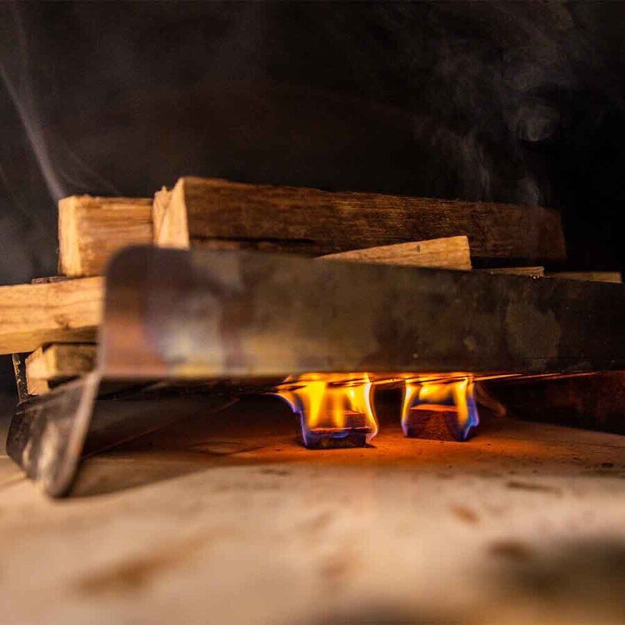 The easiest way to light a fire in a wood fired pizza oven is by using the raised pizza oven wood holder. Its raised and slotted design allows for increased airflow, which creates a better flame and a higher hotter heat in your pizza oven.