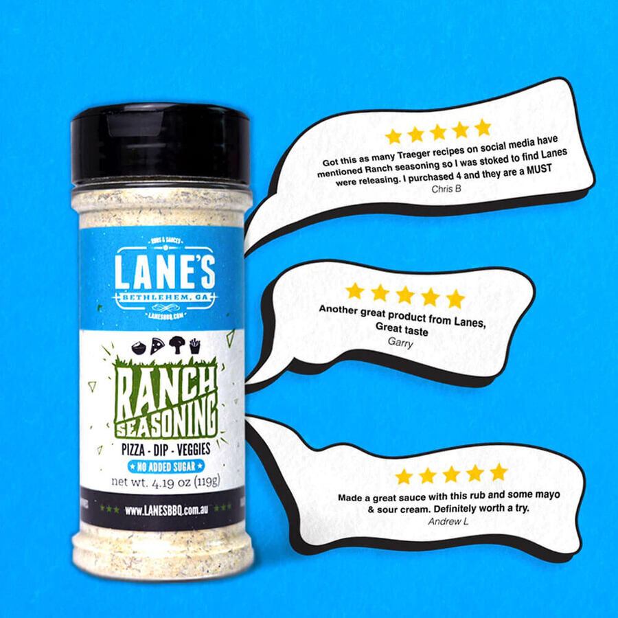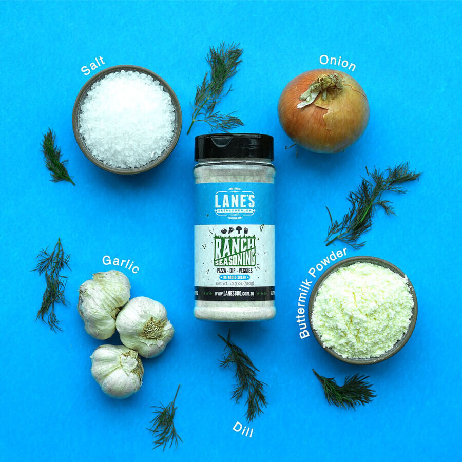 Ranch Seasoning Pitmaster 310g | Lanes BBQ. Do you enjoy the classic tangy and herbaceous flavours of ranch dressing? Lane's BBQ Ranch Seasoning is the perfect solution! Expertly crafted with a delightful mix of savoury herbs, this seasoning is tailored to infuse your dishes with the irresistible ranch taste. Whether you're grilling meats, seasoning veggies, or simply enhancing your snacks, our ranch seasoning is your ultimate pick.