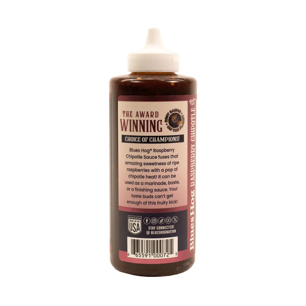 Blues Hog Raspberry Chipotle Squeeze Bottle 709g fuses that amazing sweetness of ripe raspberries with a pop of chipotle heat!