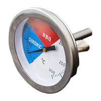 Accurate Readings. Calibrated. • Temperature from 0 to 300 degrees Celsius. • Can be Fitted to most Barbecues or Smokers (Hole may have to be drilled) • Heavy Duty Stainless Steel Construction • Size: 52mm dia. overall incl. face. • Threaded probe: 39mm x 6mm dia (with Wing Nut) • Weight:39g
