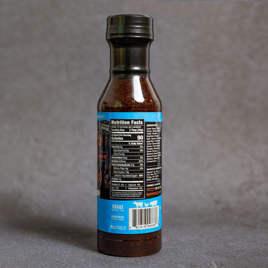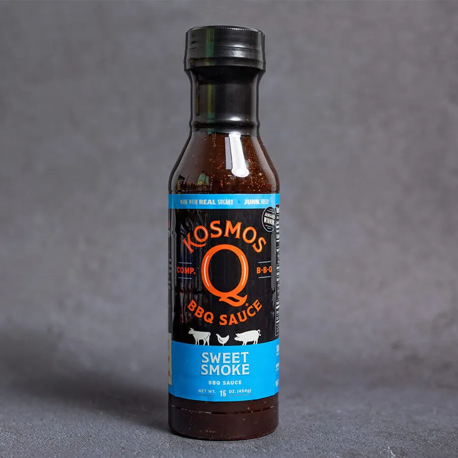 Kosmos Q Sweet Smokey Smoke BBQ Sauce is a delicious sweet, BBQ sauce with character. Bold, tangy and sweet, it goes best with ribs and pork butt. Kosmo's Q is the best and only way to truly get smoked out! With chilli pepper and garlic, they all partner alongside the natural savoury smokiness that will give your favourite meats that perfect smoky top-off.