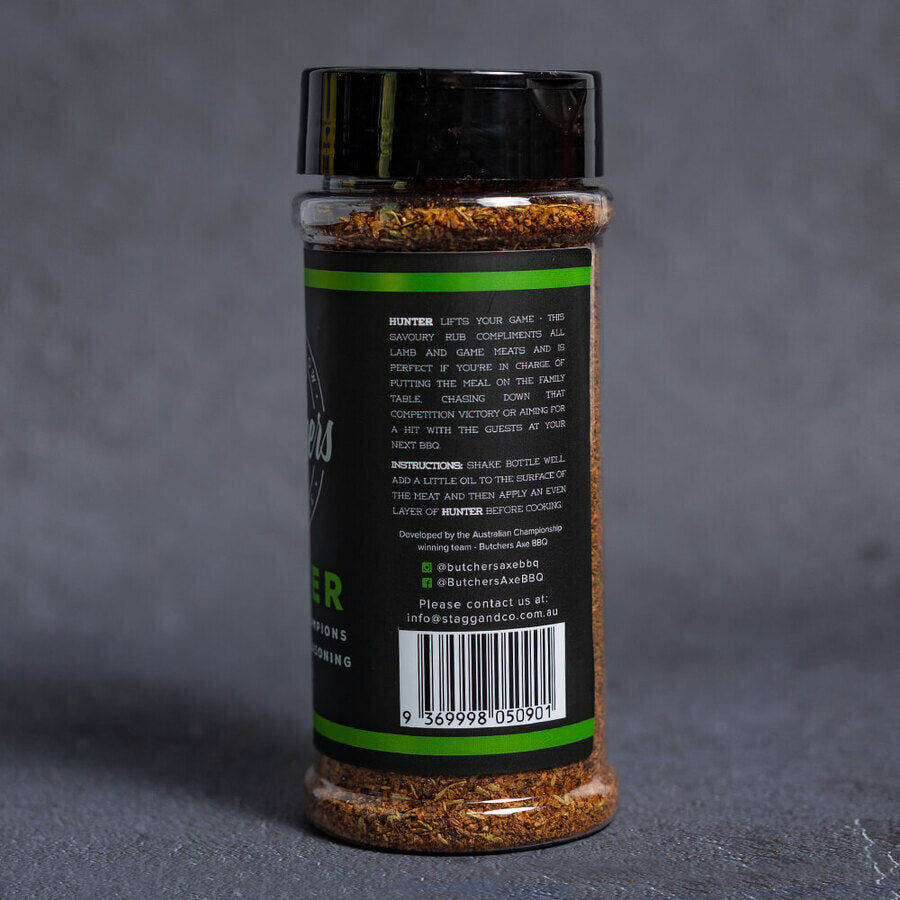 Lamb has always been one of our strongest categories, and Butchers Axe BBQ HUNTER - Lamb and Game Rub didn't disappoint with a score of 287/300 with all 9's and 10's for taste, helping the team to win the Overall Grand Champion. This rub will surely step up your BBQ level whether you are cooking for family or in Competition.