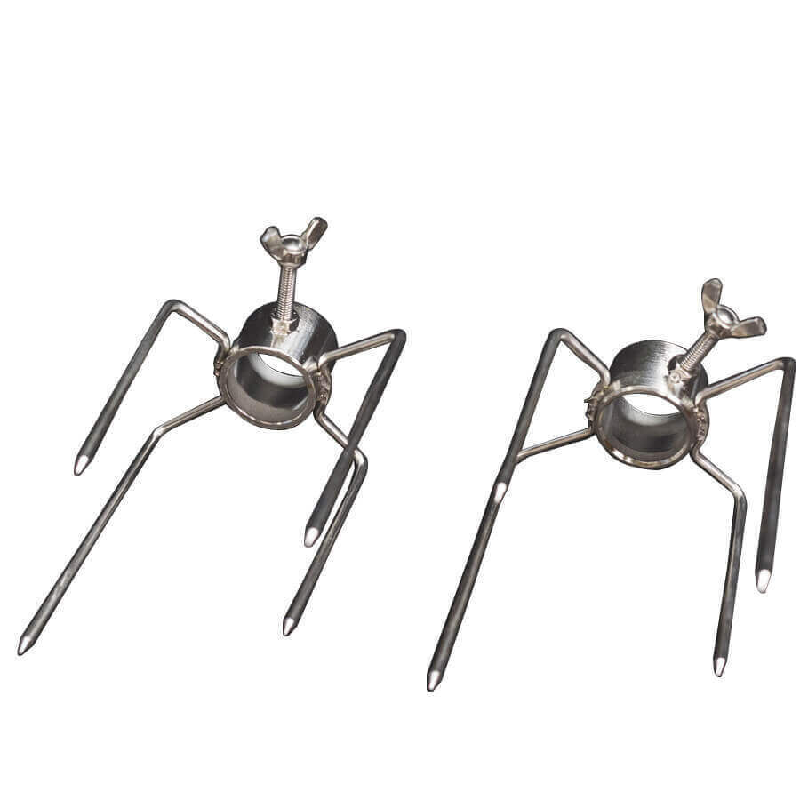 This spit roast chicken pack comes with 2 end chicken prongs and 1 double ender chicken prong. This starter pack is suitable for 2 whole chickens to be cooked at one time on a spit roaster. Also can be used for cooking other smaller cuts of meat.
