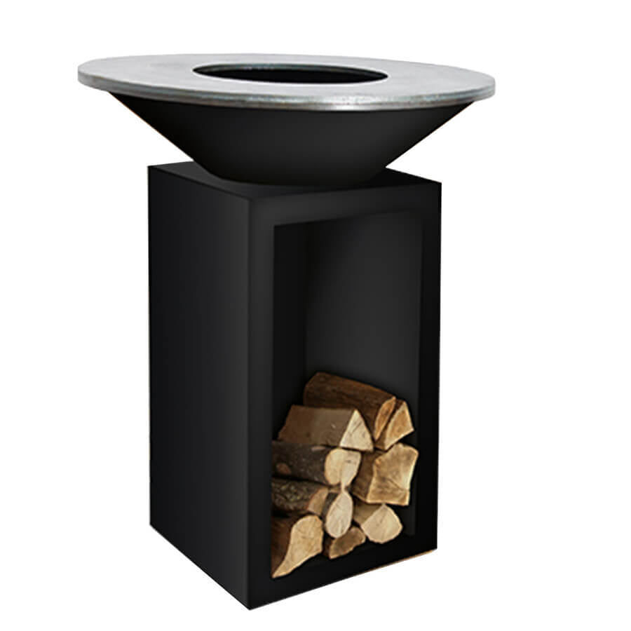 Elegance with a realistic use is how to describe the Round Black Firepit BBQ with wood storage - 1000mm. It's a grill that is also a fire pit, that is also a piece of art; bringing nature, sunshine, food, and friendship to your backyard. It's a lot of fun to cook on and it looks amazing!