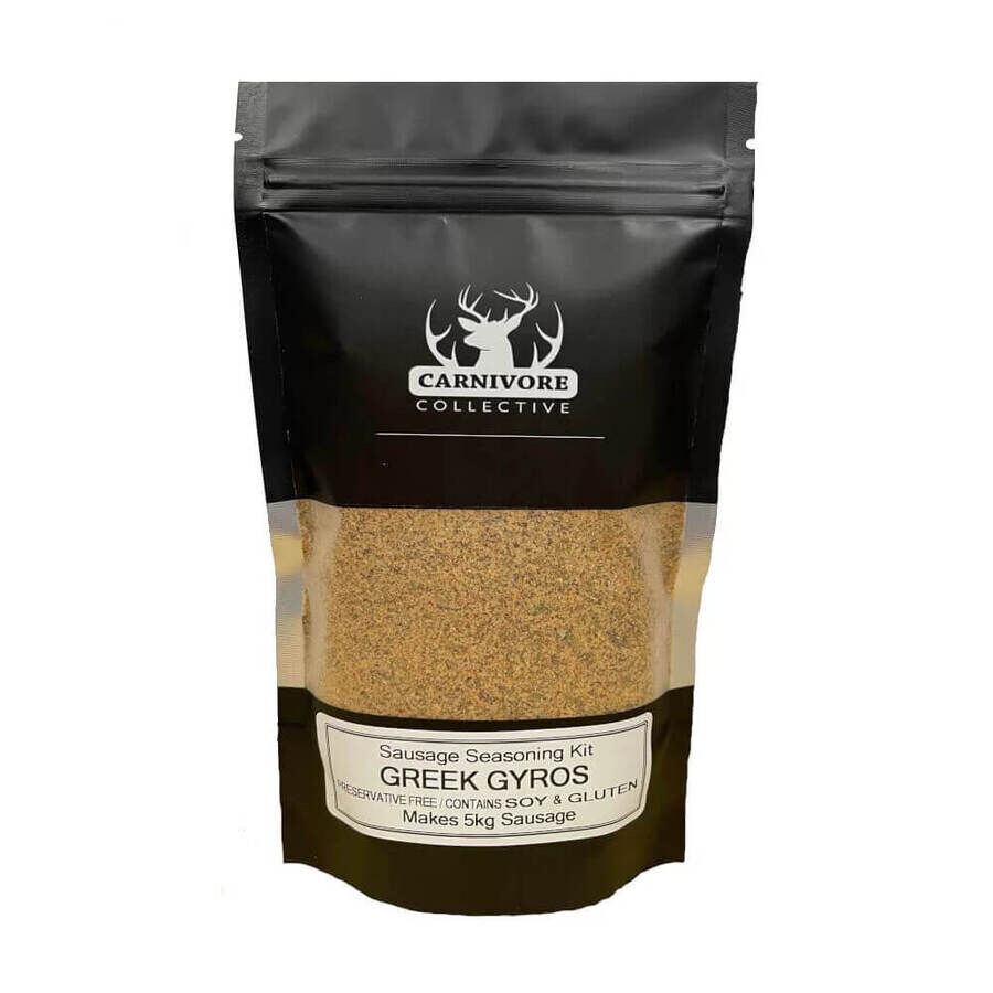 Sausage Seasoning Kit - Greek Gyros | Home Butchers. The classic Greek tastes of garlic, onion, and citrus meld with smoked salt to pay tribute to the flavours found in Gyros/Souvlaki. This seasoning for sausage can also double as a seasoning for hamburgers.