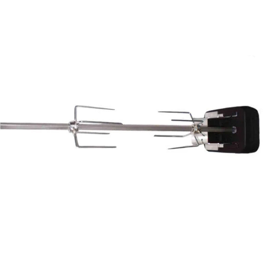 The Sizzler Galleymate 1100 & 1500 Rotisserie Spit Kit includes everything you need for a flawless rotisserie experience. The kit features a stainless steel skewer (58.5cm x 11cm round), 2 prongs, and a motor bracket, ensuring you have all the tools for a secure and even roast.