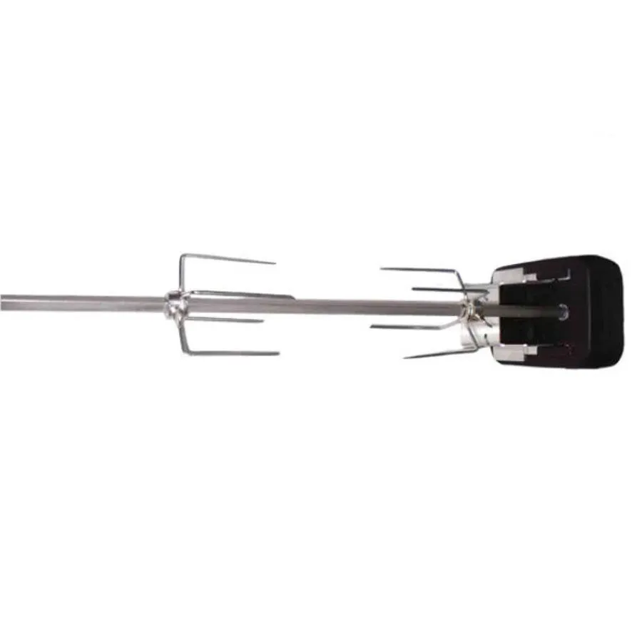 This kit operates on 2 D-cell batteries, ensuring you have a reliable, portable power source for your rotisserie motor. With no need for an electrical outlet, the Sizzler Galleymate Rotisserie Spit Kit is perfect for outdoor use, whether you're camping, at the beach, or in your backyard.