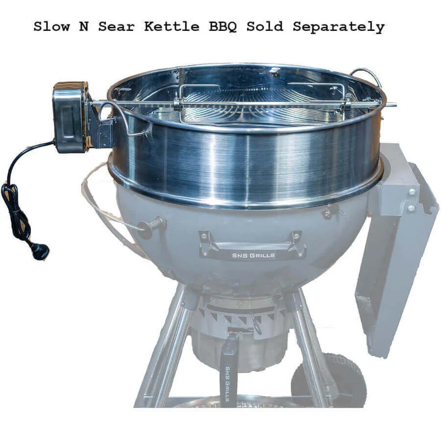 Slow 'N Sear Kettle Ring Rotisserie Kit. Looking for a rotisserie to go with your 22" SnS Kettle Grill? Look no further! This ring 'o fire is the ideal match. Want to make charcoal chicken at home? Easy! Want to just raise the entire grate to avoid a grease fire while grilling ribeyes at temperatures so high that the magma in the earth freezes? Use this!