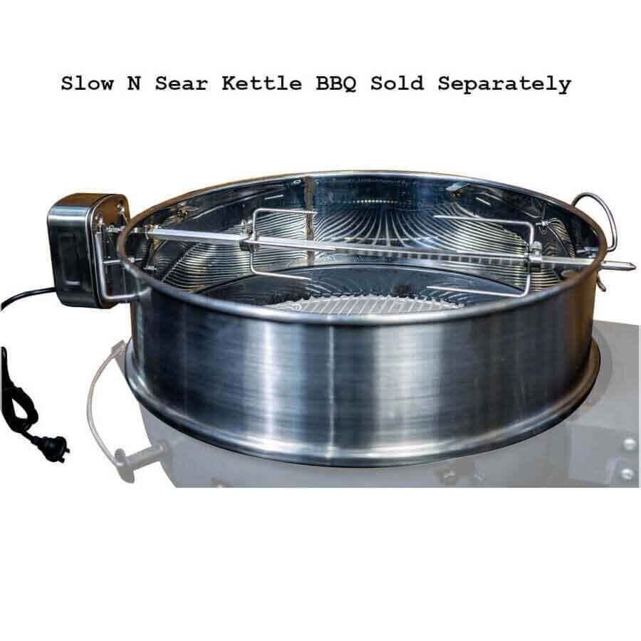 Rotisserie set up for your SNS Kettle- Adds a rotisserie kit to your Kettle BBQ so you can now smoke and spit roast.