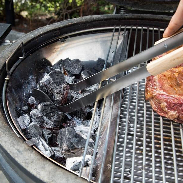 The angled head on our charcoal tool works great for shifting coals about in the Slow 'N Sear basket, an area where many straight spatulas and grill utensils fall short. This tool works well for both churning up coals for Warp 10 searing and pushing leftover coals to the side to replenish during a lengthy roast. Additionally, you have the precise accuracy needed to safely pick up small wood pieces or embers, sometimes known as cherries.