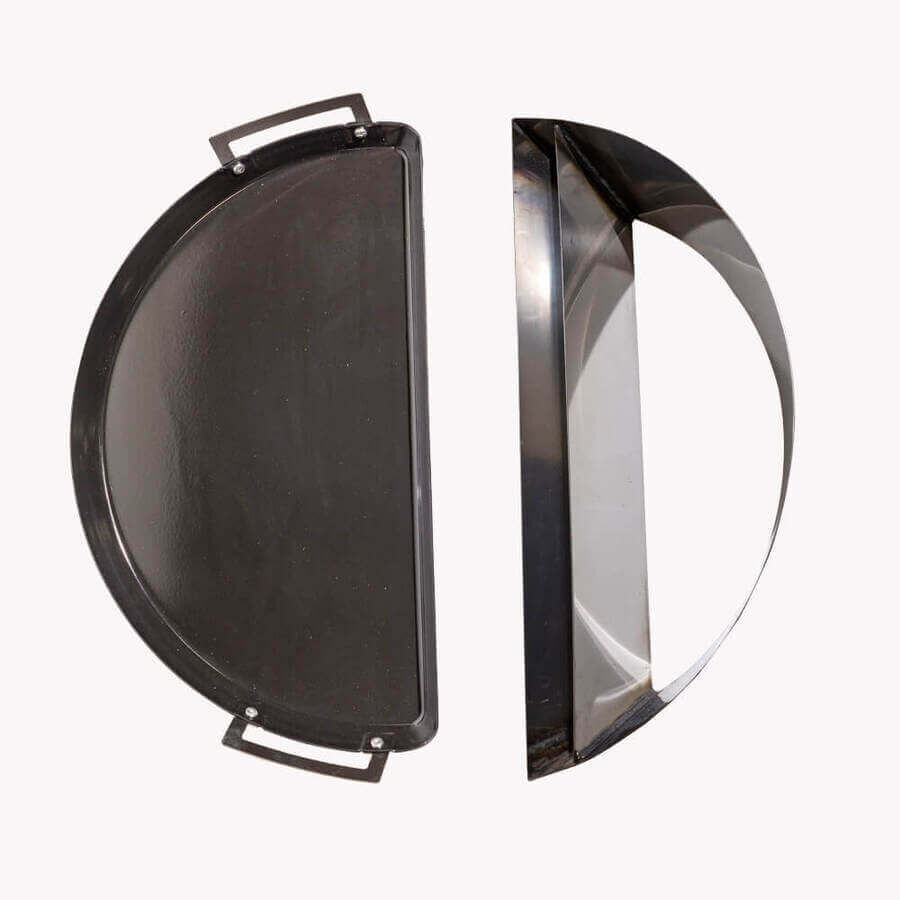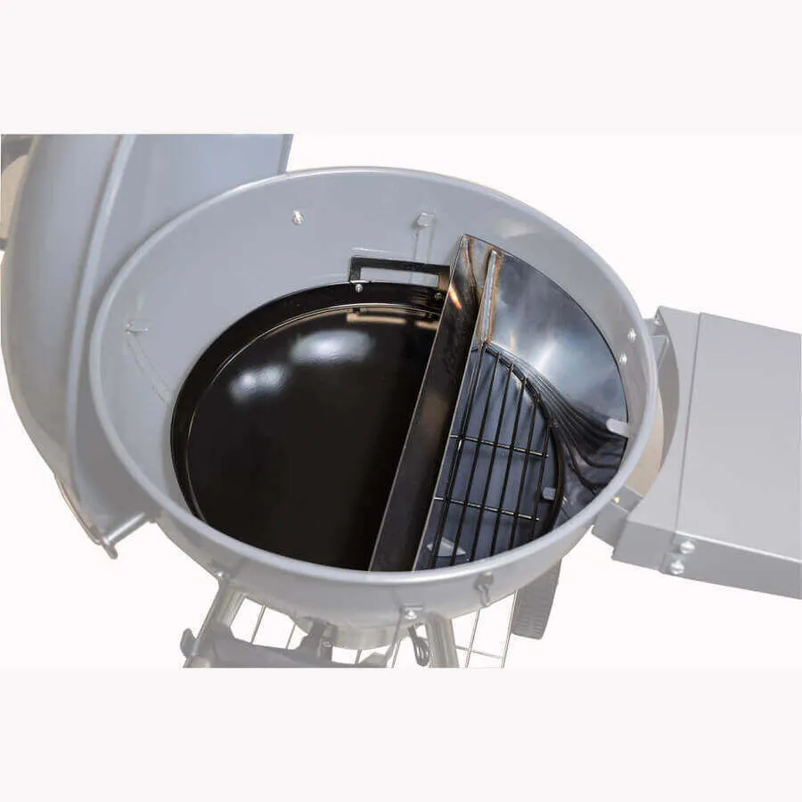 This kettle BBQ smoker conversion kit comprises 2 key components; The Slow n Sear Original charcoal basket and the Porcelain Drip n Roast Pan. When used together these two components act as an advanced designed offset plate setup and create a true and proper 2 zone cooking environment that is essential for smoking in your kettle BBQ and delivers competition-winning results. The Slow n Sear original with its built-in water reservoir act as an insulated heat shield to keep the temperature on the indirect cooking side consistent while the Drip n Griddle pan acts as a funnel, directing the airflow through the coals in the Slow N Sear which assists in easy temperature control as well as catching all the drippings from your cooks making the cleanup process easy.