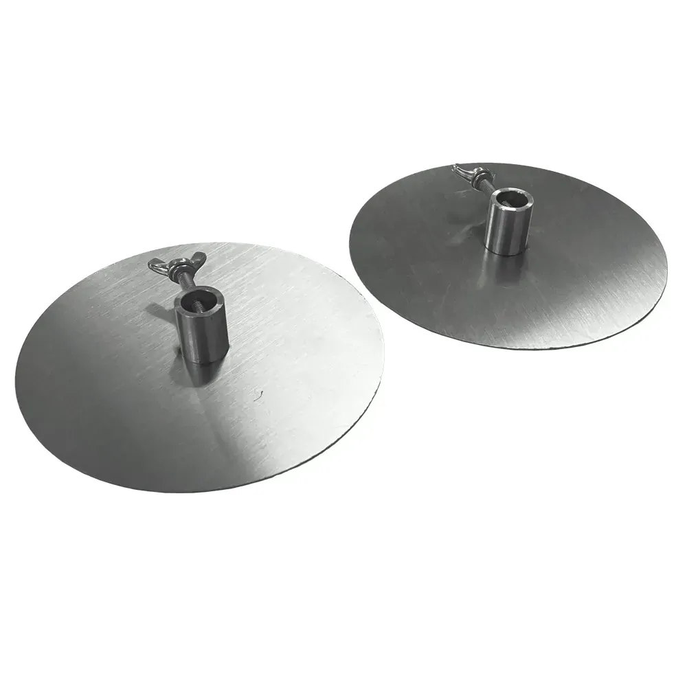 Make cooking authentic gyros and souvlaki easier with the Souvlaki Stainless Steel Gyros Plate 14mm x2. Designed to fit 14mm round skewers, these durable stainless steel plates firmly hold your meat in place while it cooks. Simply press your meat between the two plates and it stays tightly secured, just like using prongs or spikes but without the sharp edges getting in the way when carving.