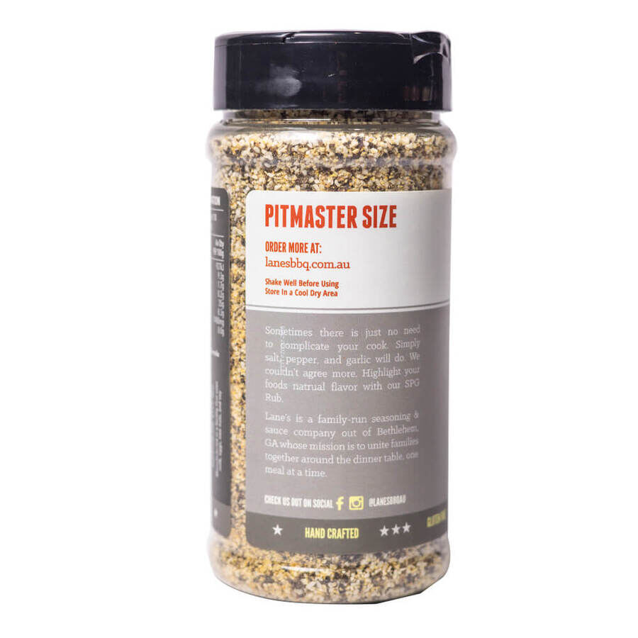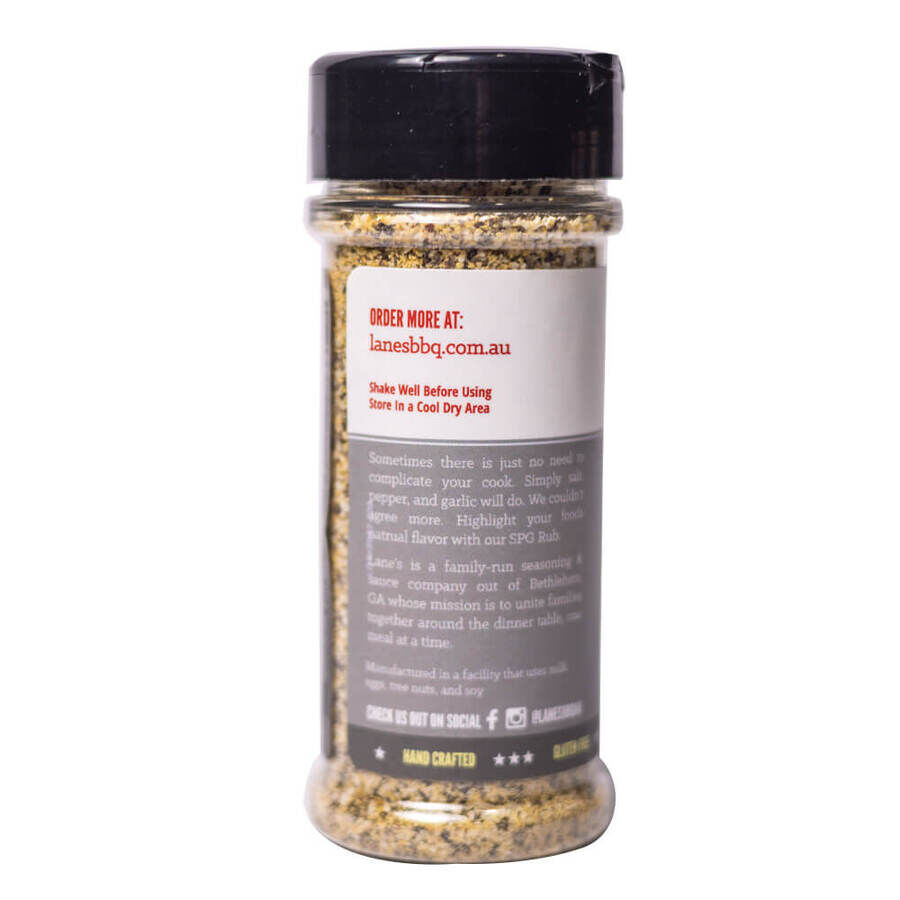 SPG Rub | Lanes. No need to complicate your cook. Simply salt, pepper, and garlic will do. We couldn't agree more. Highlight your food's natural flavor with our SPG Rub.