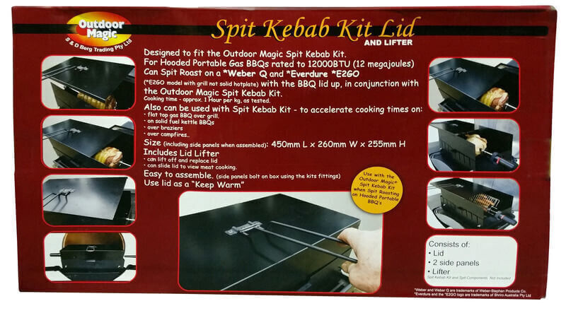 The lid & lifter is a great add on to your Outdoor Magic Spit Kebab Kit and helps reduce cooking time